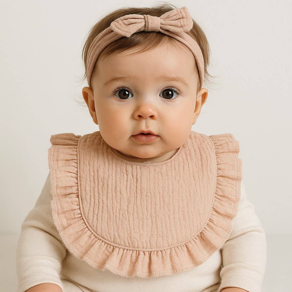 Babyslabbertje in het beige met volant. Biologisch katoen