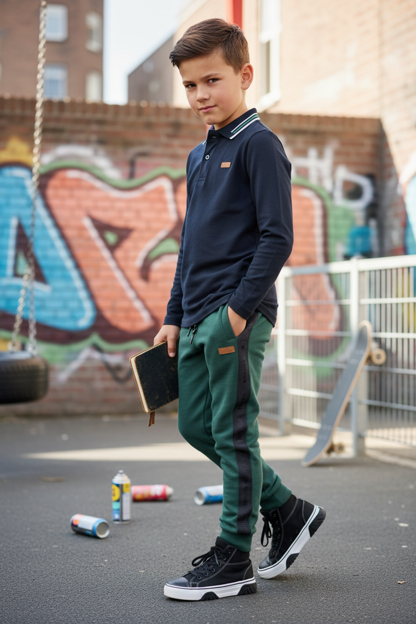 Deze toffe groene jogger met een zwarte streep aan de zijkant is perfect voor een sportieve look. Het frisse design en de comfortabele fit maken hem ideaal voor zowel relaxed loungen als actief bezig zijn!