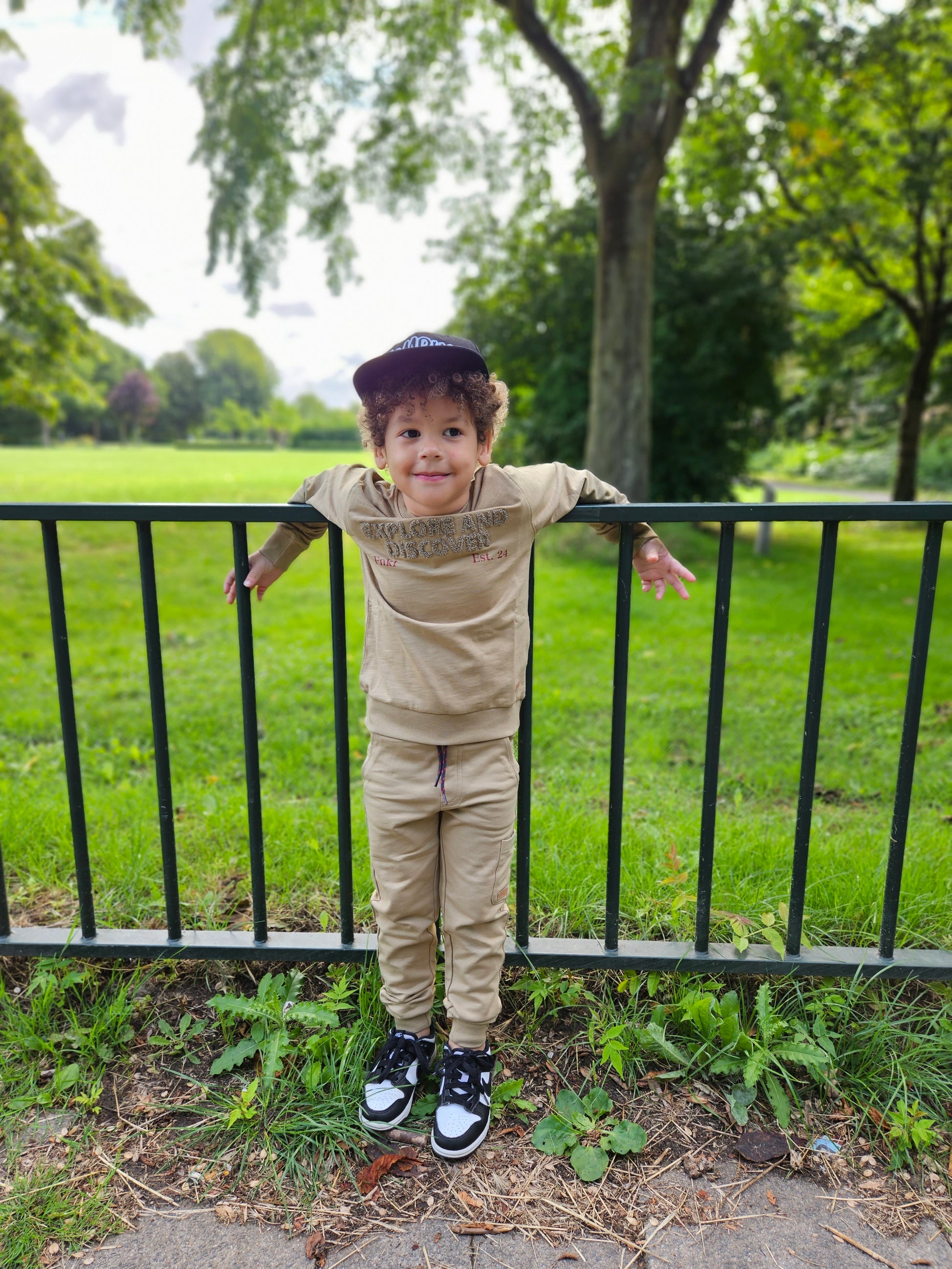Deze zandkleurige sweater is een must-have voor kleine avonturiers. Met de tekst Explore & Discover op de borst en een comfy fit is hij perfect om de wereld in te trekken – of gewoon lekker te relaxen.