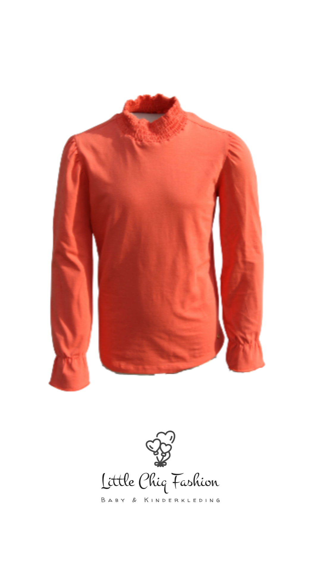 Oranje longsleeve met een hoge kraag en sierlijke mouwtjes, perfect voor een opvallende en elegante look.