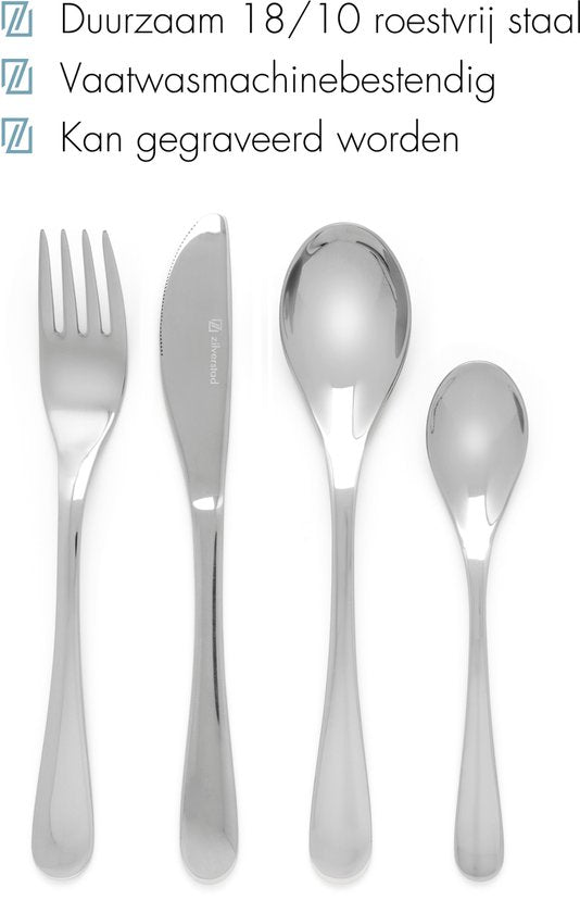 Op zoek naar een origineel kraamcadeau? Dit vierdelige besteksetje van Zilverstad is een praktisch én betekenisvol cadeau. Het besteksetje is vervaardigd uit hoogwaardig RVS 18/10, wat het niet alleen duurzaam maakt, maar ook vaatwasmachinebestendig. Geen poetsen nodig!