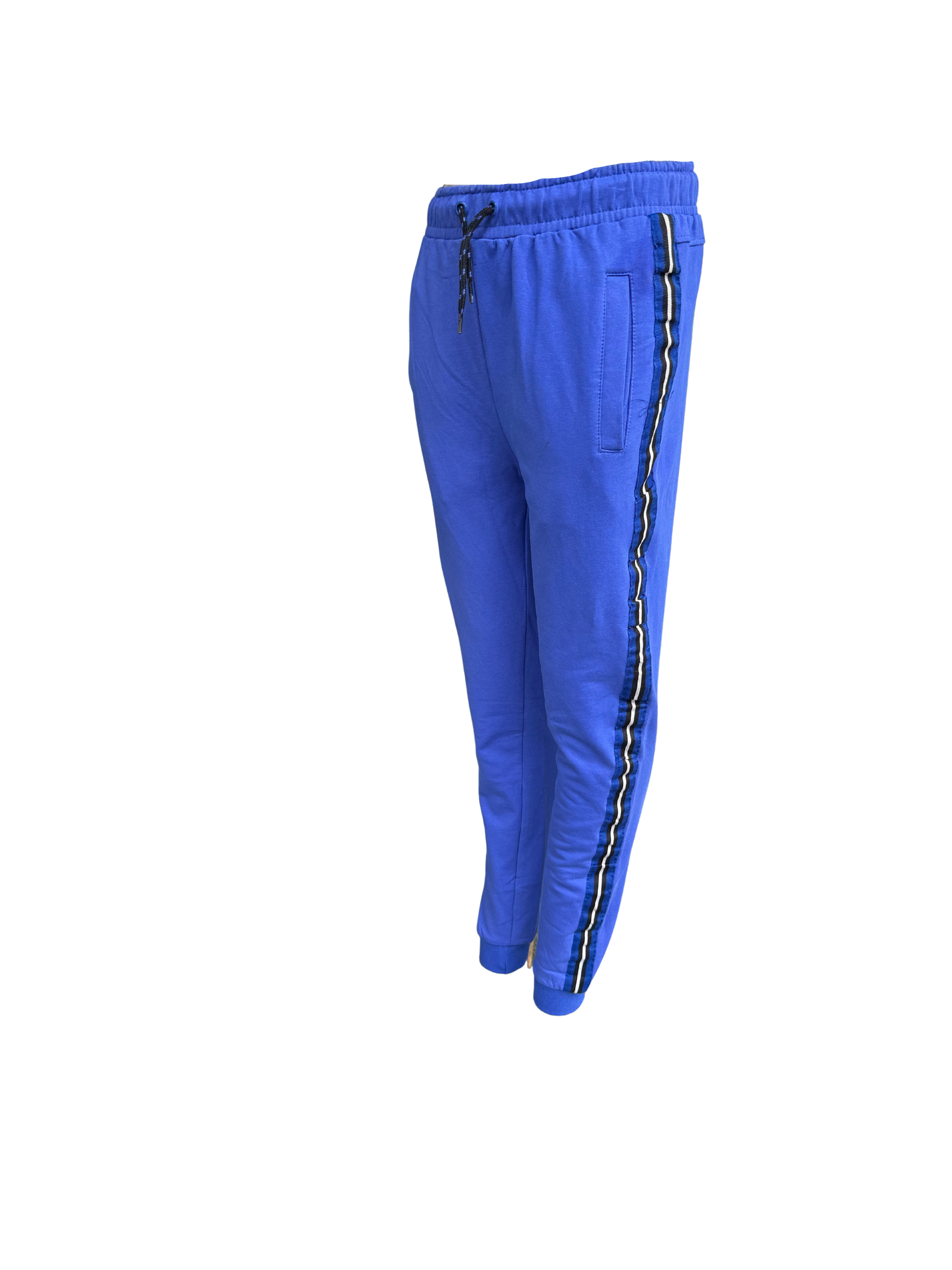Deze felblauwe jogger brengt kleur in elke outfit! De streep op de zijkant geeft de jogger een energieke en sportieve uitstraling. Gemaakt van een zachte, comfortabele stof met een elastische tailleband en steekzakken, perfect voor een actieve dag of gewoon lekker ontspannen. Een frisse, stoere keuze!