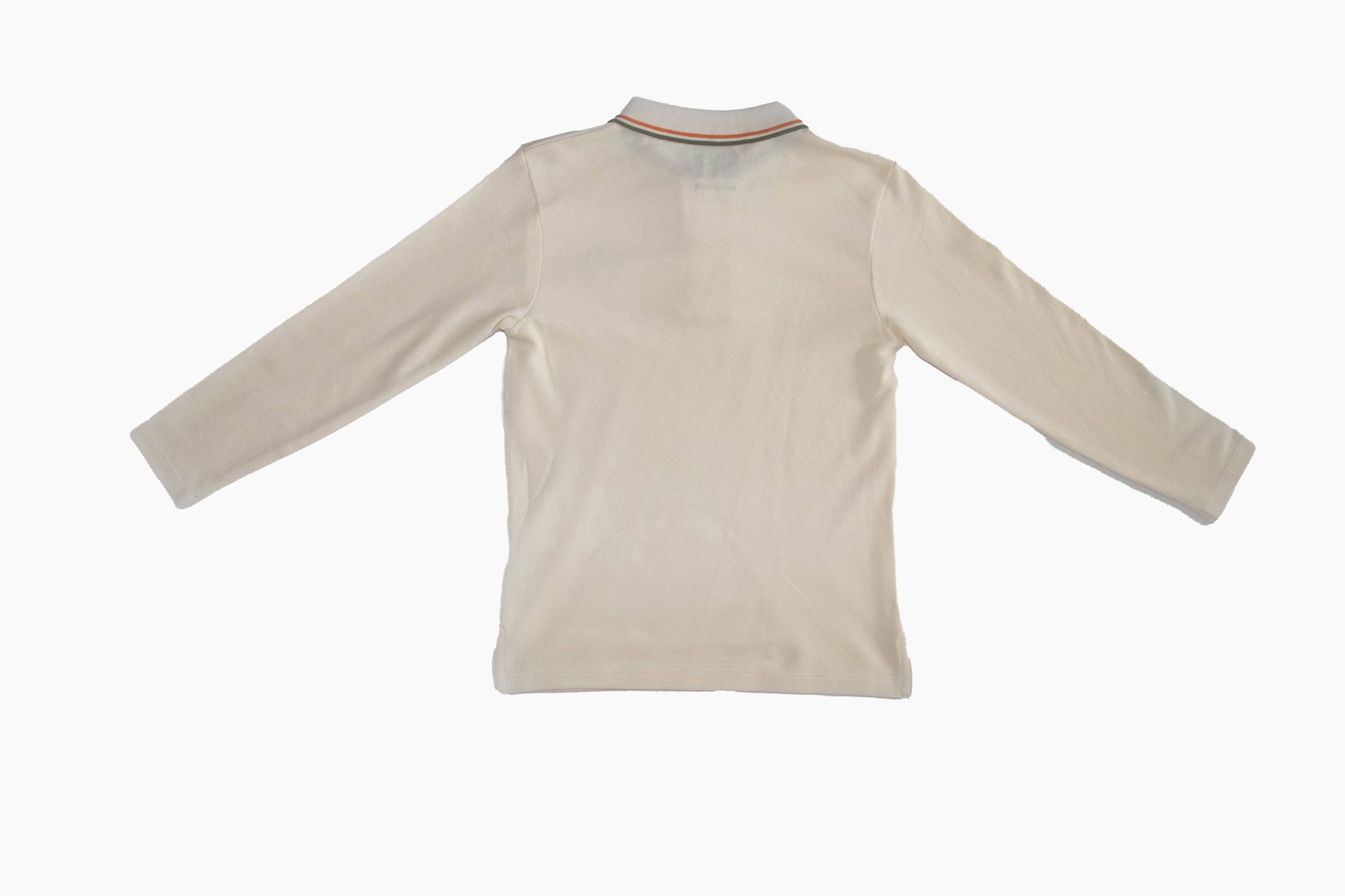 Deze roomwitte polo straalt elegantie uit met een speels tintje. De groene en oranje accenten in de kraag geven ‘m een levendige, frisse uitstraling. Gemaakt van een zachte, ademende stof, ideaal voor zowel casual als iets nettere momenten. Een stijlvolle basic met een kleurrijk detail!