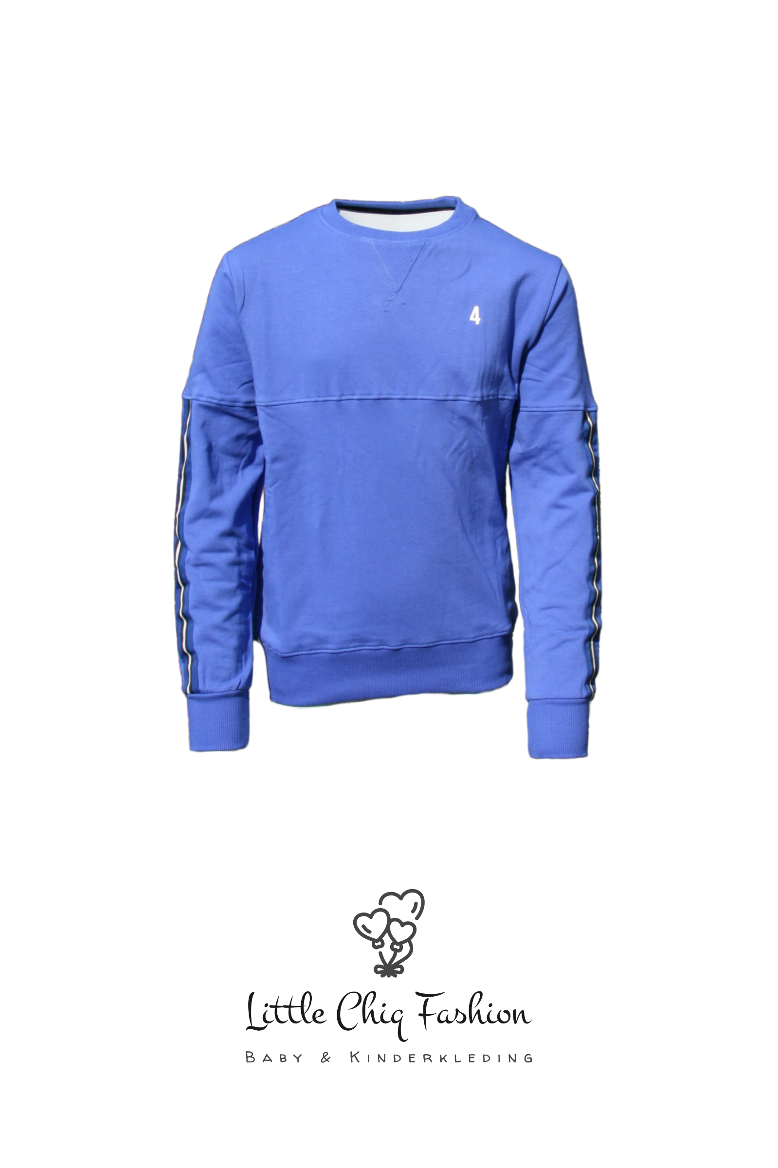 Deze felblauwe sweater knalt eruit met z’n frisse kleur en sportieve streep op de mouw. Perfect voor kids die graag opvallen en vol energie zitten. Gemaakt van zachte, comfortabele stof en ideaal om in te bewegen, chillen of gewoon de show te stelen!