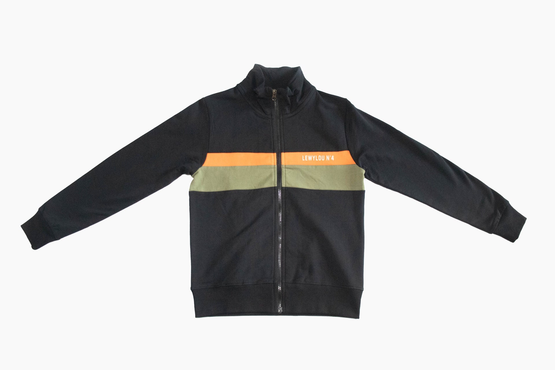 Dit zwarte kindervest is een echte blikvanger dankzij de speelse oranje en groene streep die er vrolijk uitspringen. Gemaakt van een zachte, comfortabele stof, ideaal om in te spelen, ravotten of gewoon lekker warm te blijven. De frisse kleuren geven het vest een sportieve en vrolijke uitstraling – perfect voor kids met pit!