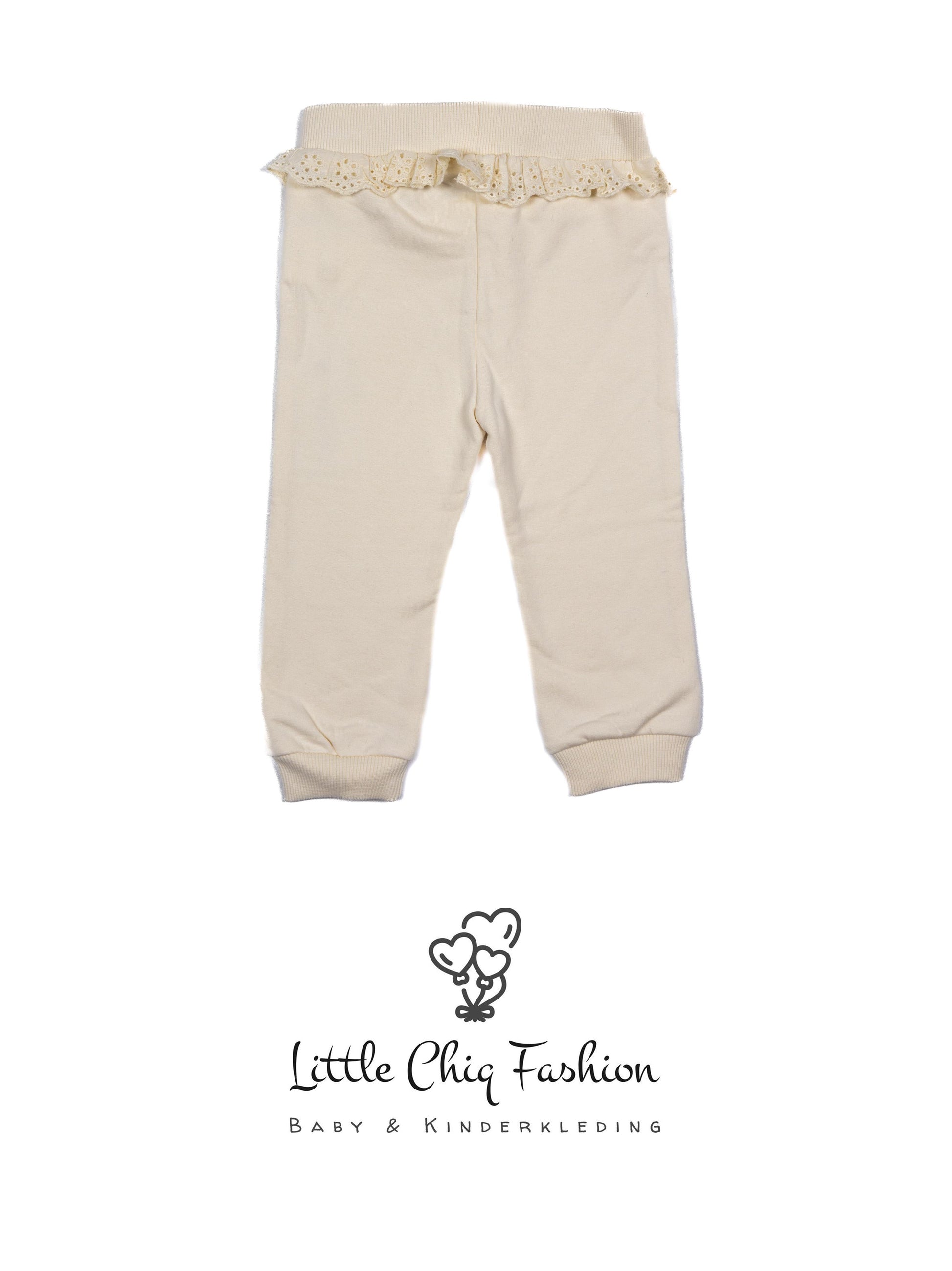 Little Chiq joggingbroekje met ruffel om de taille. Bekijk de bijpassende sweater voor een lief maar toch stoer joggingpakje.