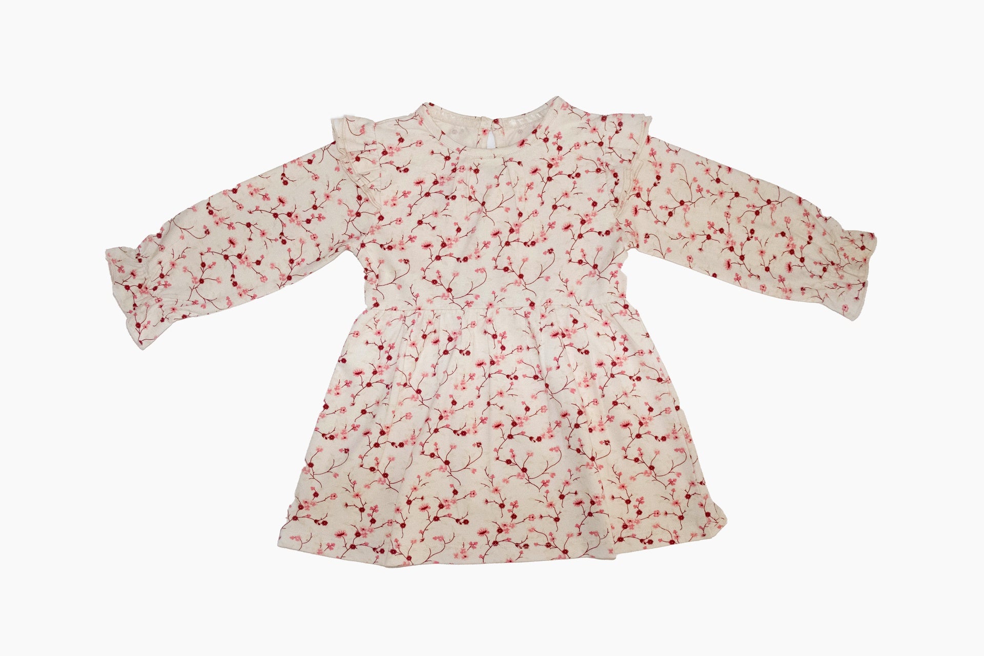 Little Chiq jurkje met ruffel op de schouder en een subtiel bloemenprintje.