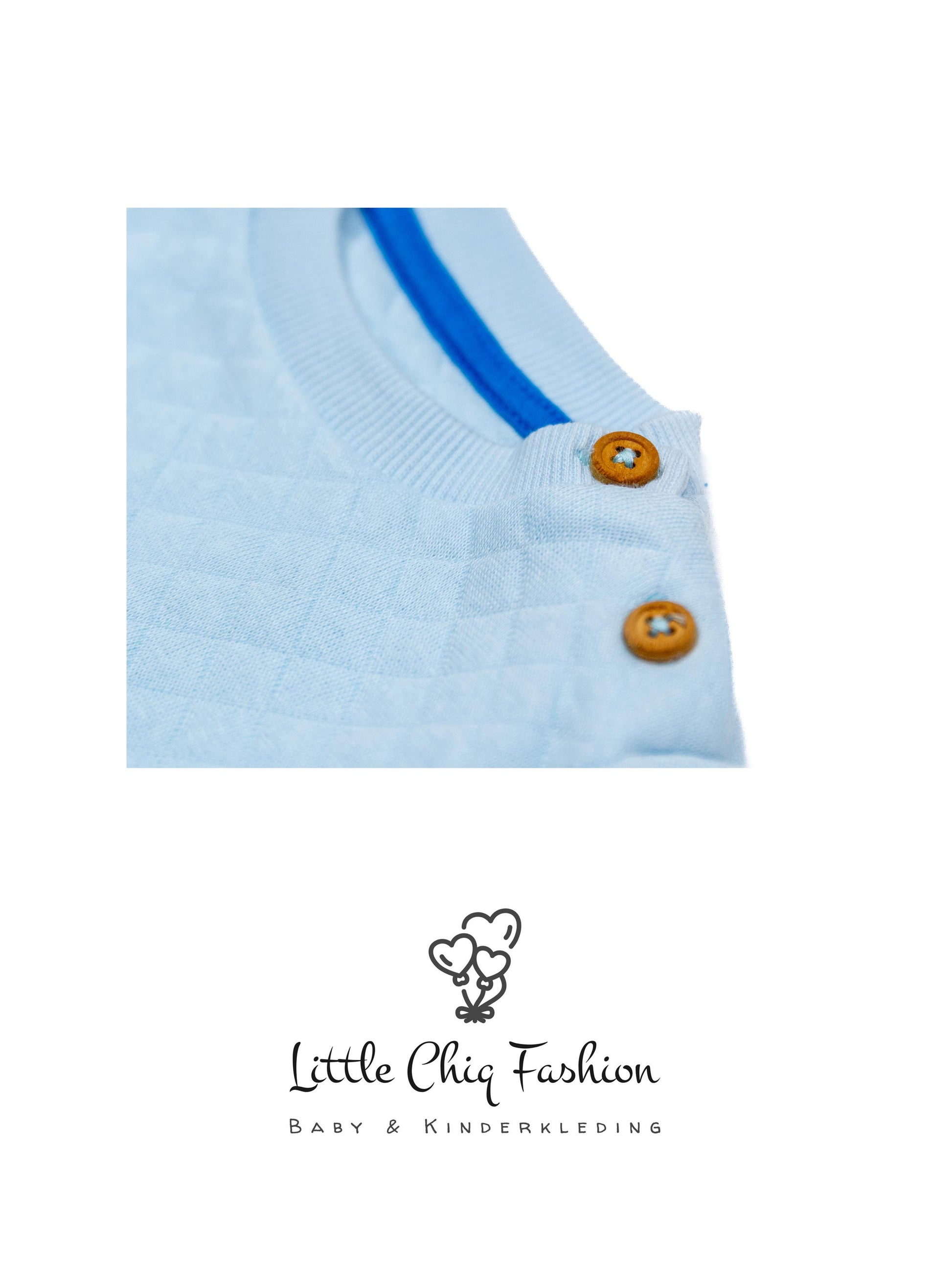 Little Chiq sweater baby blauw met wafelstof en afgewerkt met 2 knoopjes op de schouder.