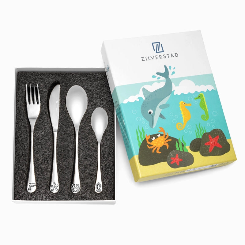 Maak kennis met de dieren die in de zee leven met dit leuke kinderbestek. Op de bestekdelen zien we een dolfijn, een zeepaardje, een krab en een zeester. Het bestek is uitgevoerd in hoogwaardig 18/10 RVS, is vaatwasmachinebestendig en wordt geleverd in een kleurrijke geschenkverpakking.